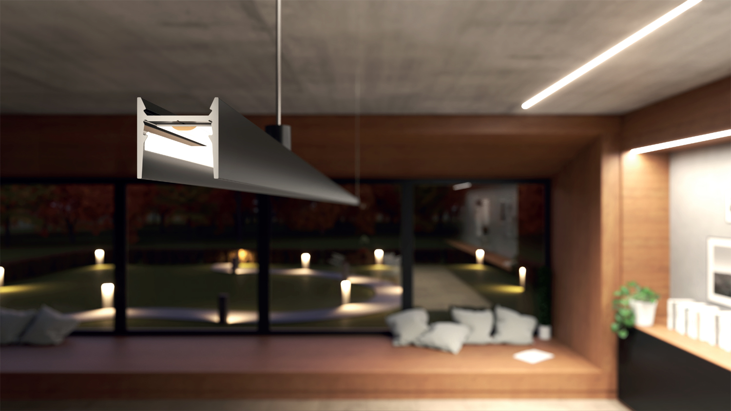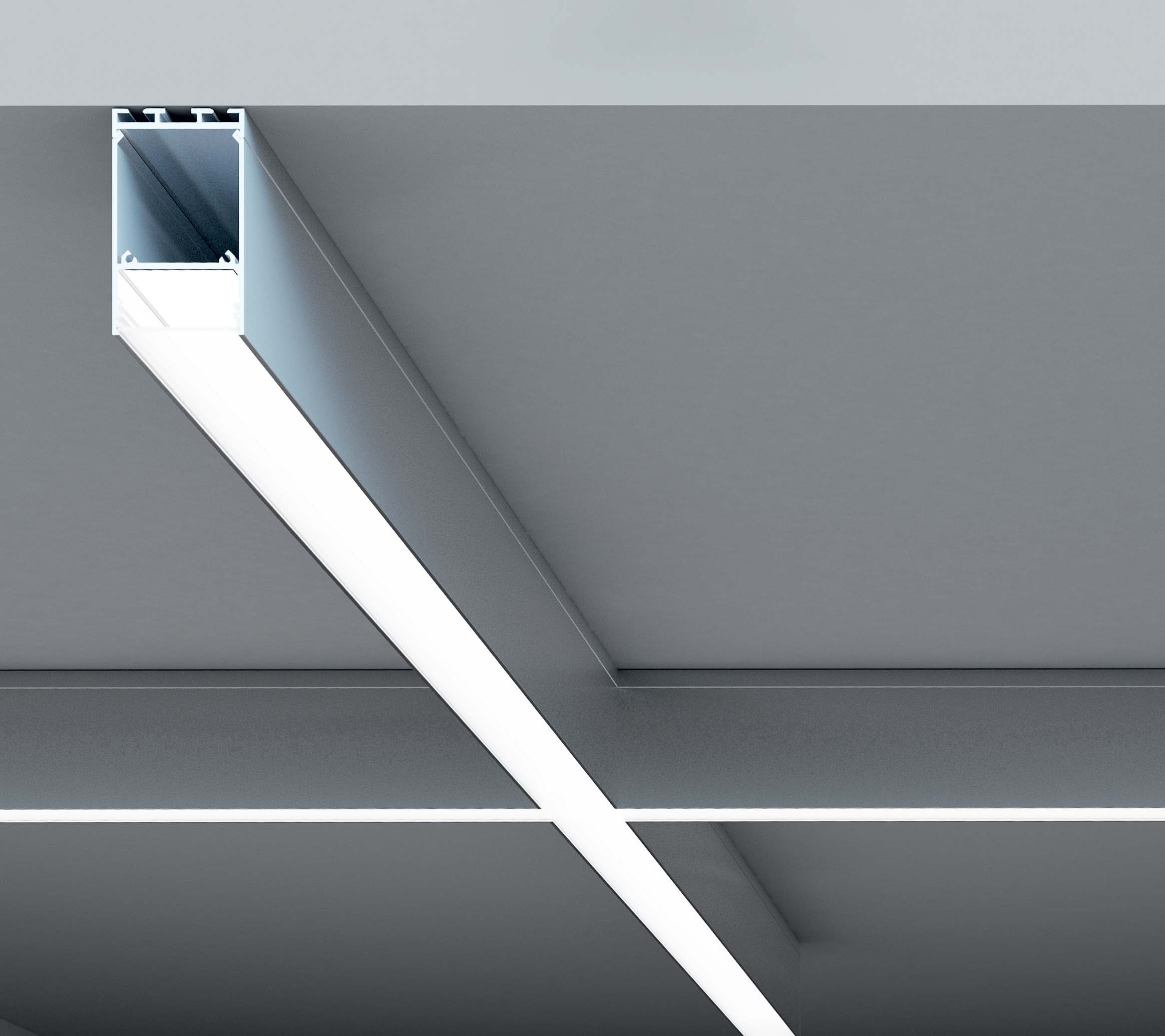 LED profil se zapuštěným difuzorem potlačuje oslnění z bočního pohledu.