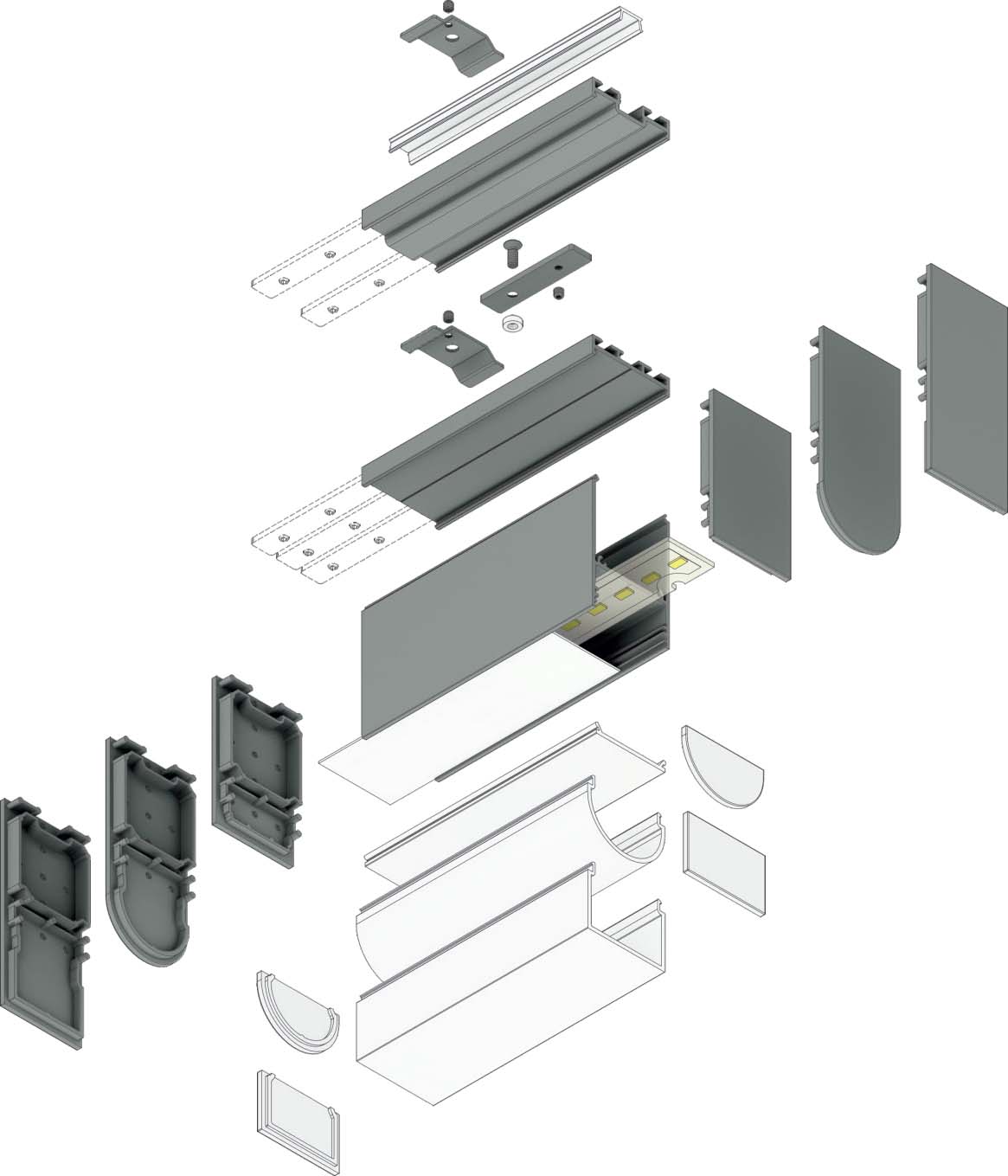 - Stupeň krytí (IP): Naprostá většina LED profilů pro výrobu svítidel poskytuje krytí (IP) základní, t.j. IP20, které je pro suché prostory. Pokud potřebujeme řešení do vhkých prostor jako jsou koupelny, nabídneme speciální řešení na míru.