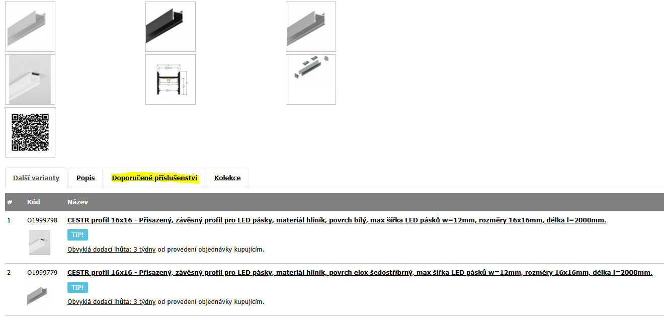 Poznámka: Správný difuzor a koncovky, se k daném LED profilu automaticky nabídnou vložením LED profilu do košíku, nebo lze toto příslušenství zobrazit pomocí záložky "Doporučené příslušenství", které se zobrazuje u daného provedení profilu.
