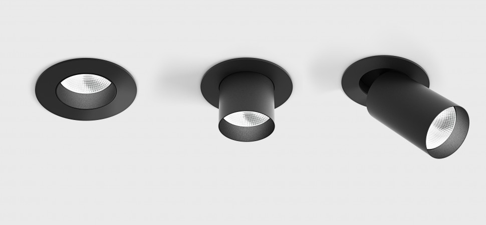 Stropní, podhledové, bodové svítidlo, výklopné, nast. směr svícení, těleso hliník, povrch černá/bílá/černá a mosaz, LED 4W, 340lm, teplá 3000K, vyzař. úhel 50°, Ra90, 230V, IP20, rozměry d=30mm.