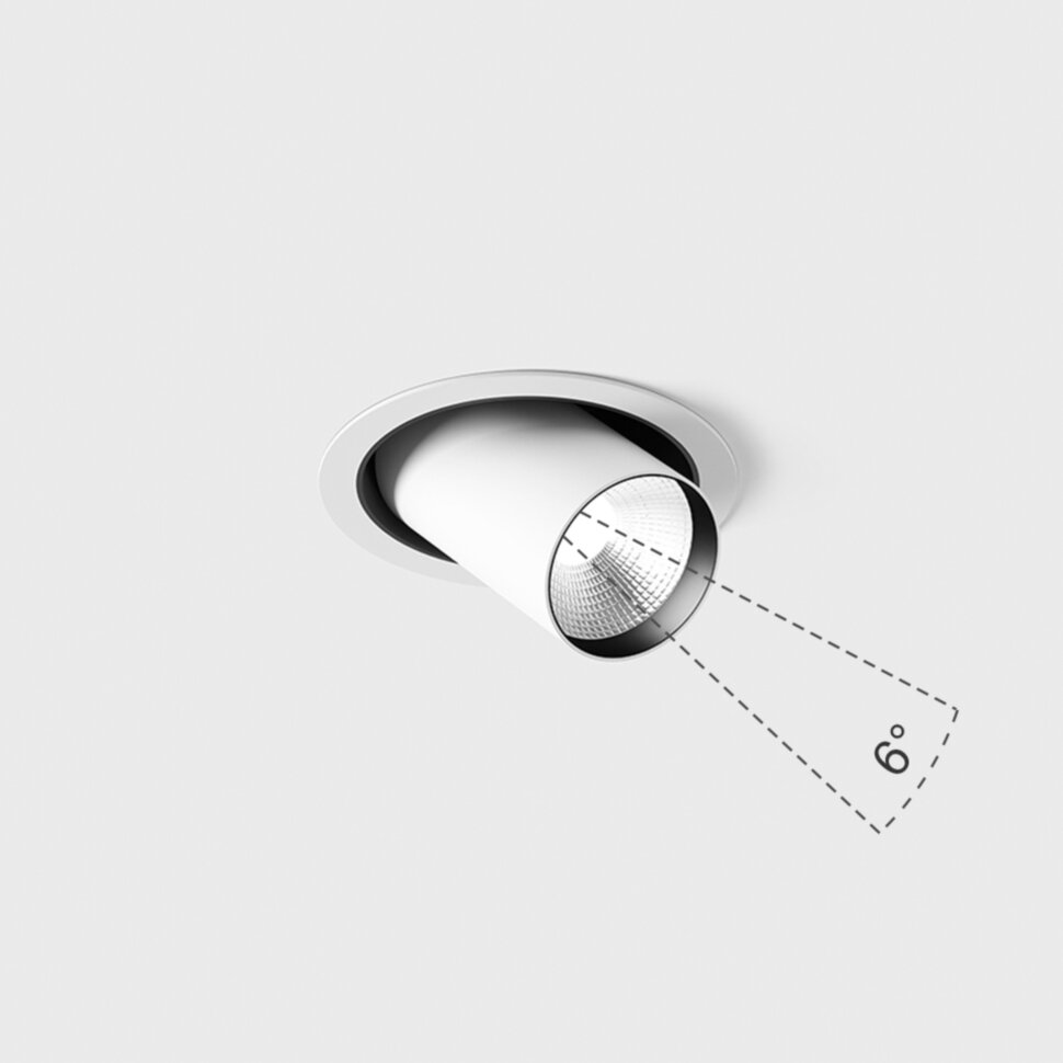 ALEST BI 9W 6° - Stropní, podhledové, bodové svítidlo, výklopné, nast. směr svícení, těleso hliník, povrch bílá, LED 9W, 750lm, teplá 3000K, vyzař. úhel 6°, Ra90, 230V, IP20, rozměry d=115mm.