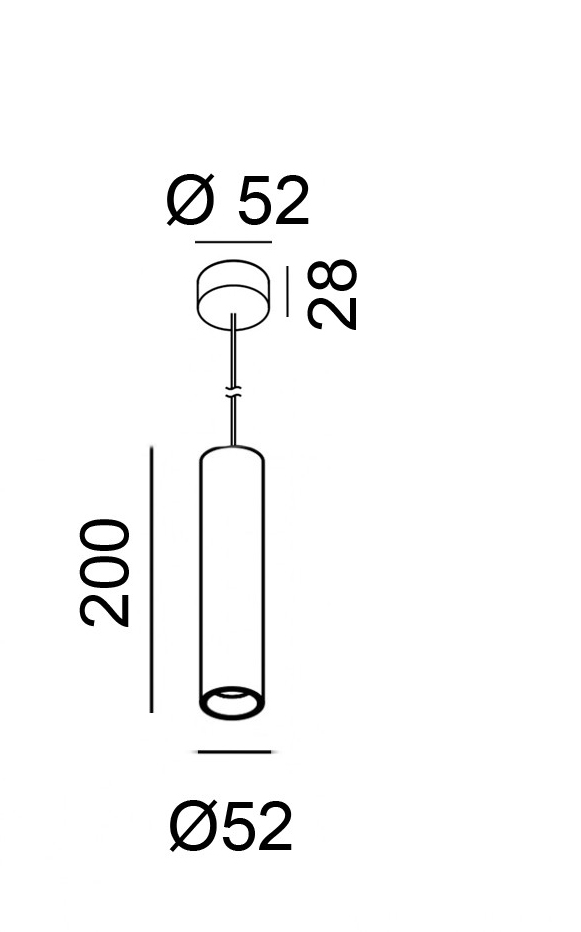 Rozměry | d=52mm, h=200mm, vč závěs kabelu l=1500mm, lze zkr. Uváděné rozměry jsou pouze informativní a výrobce je může změnit. |