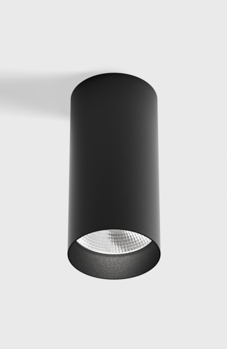 - Stropní přisazené bodové svítidlo, těleso hliník, povrch černá lesk, LED 9W, 540lm, neutrální 4000K, vyzař. úhel 35°, Ra90, 230V, IP20, rozměry d=52mm, h=110mm.