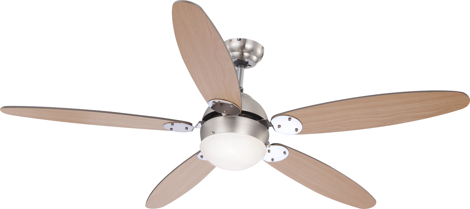 ALNIE 1x60W, E14, ventlátor - Stropní ventilátor s osvětlením, těleso kov, povrch nikl, oboustranné lopatky dřevo světlé a šedá, dif sklo opál, pro žárovku 1x60W, E14, rozměry d=1320mm, h=406mm, ovládání pomocí tahového spínače