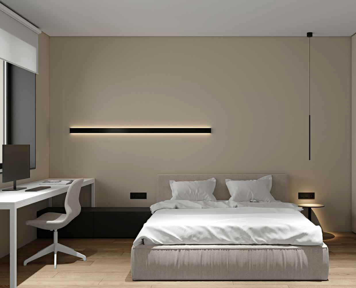Nástěnné svítidlo, těleso hliník, povrch bílá/černá, difuzor plast opál, LED 18W/1800lm, 36W/3600lm, 48V, IP20, rozměry dle typu, svítí nahoru/dolů.