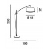 Stojací lampa, těleso kov, povrch chorm lesk, stínítiko textil bílá, pro žárovku 1x60W, E27, 230V, IP20, rozměry d=450mm, h=2000mm, vč vypínače na tělese.