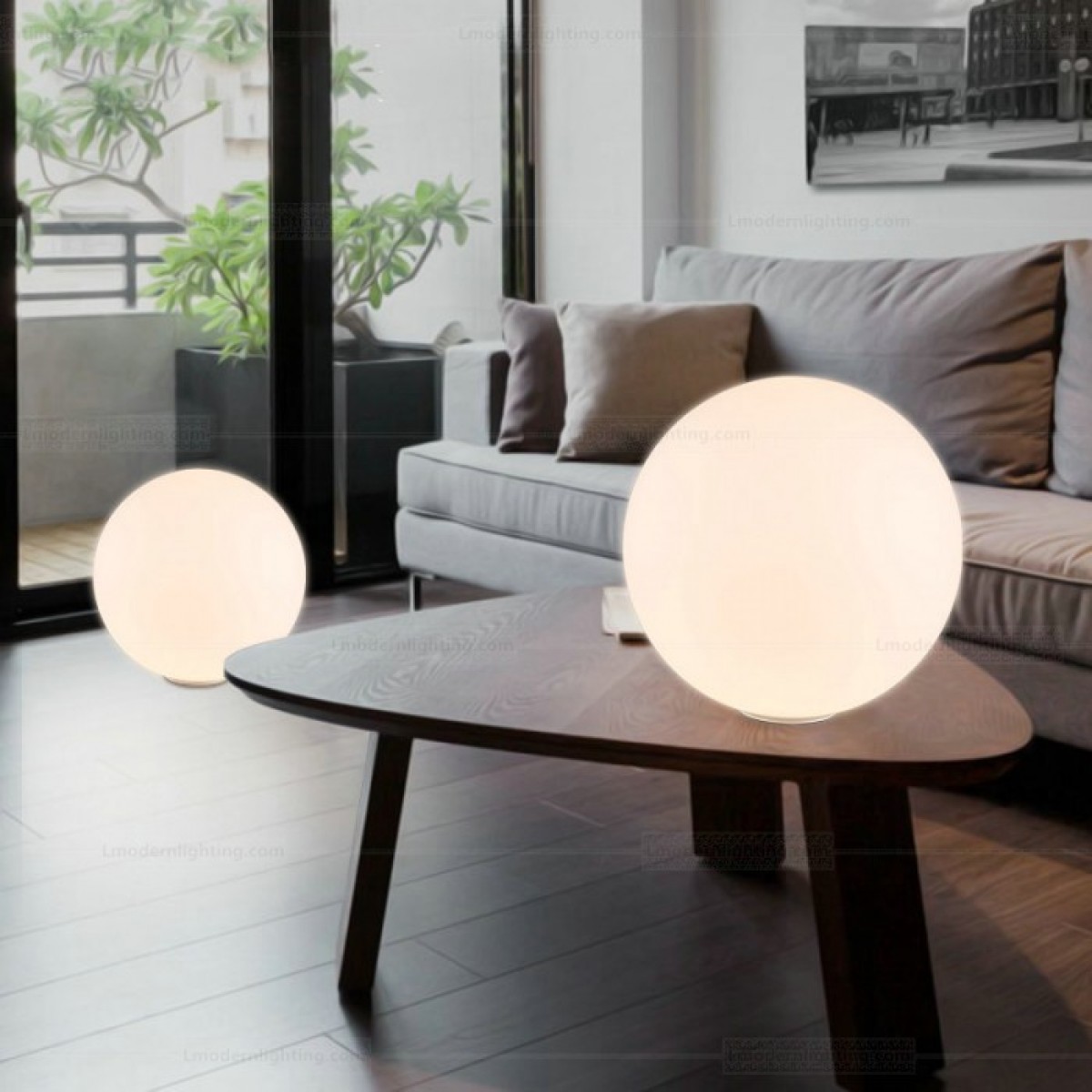 DIOSCURI 35 TABLE - Stolní lampa, základna plast, povrch bílá, difuzor sklo opál mat, pro žárovku 1x150W, E27, A60, 230V, IP20, tř.2, d=350mm, h=340mm, se stmívačem