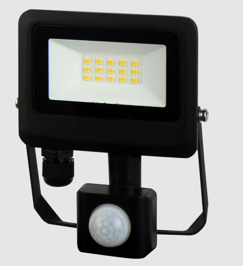 Venkovní reflektor, PIR senzor pohybu, dosah 0,5-8m, čas 10s-8min, těleso hliník, povrch černá, krycí sklo čiré, LED 10W/20W/30W/50W/100W, neutrální 4000K, vyzař. úhel 120°, 230V, IP65, rozměry dle typu.