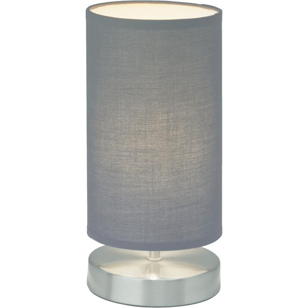BALIS stolní - Stolní lampa, základna kov, povrch chrom mat, stínítko textil, šedá, pro žárovku 1x40W, E14, 230V, IP20, d=120mm, h=255mm, vypínač na kabelu