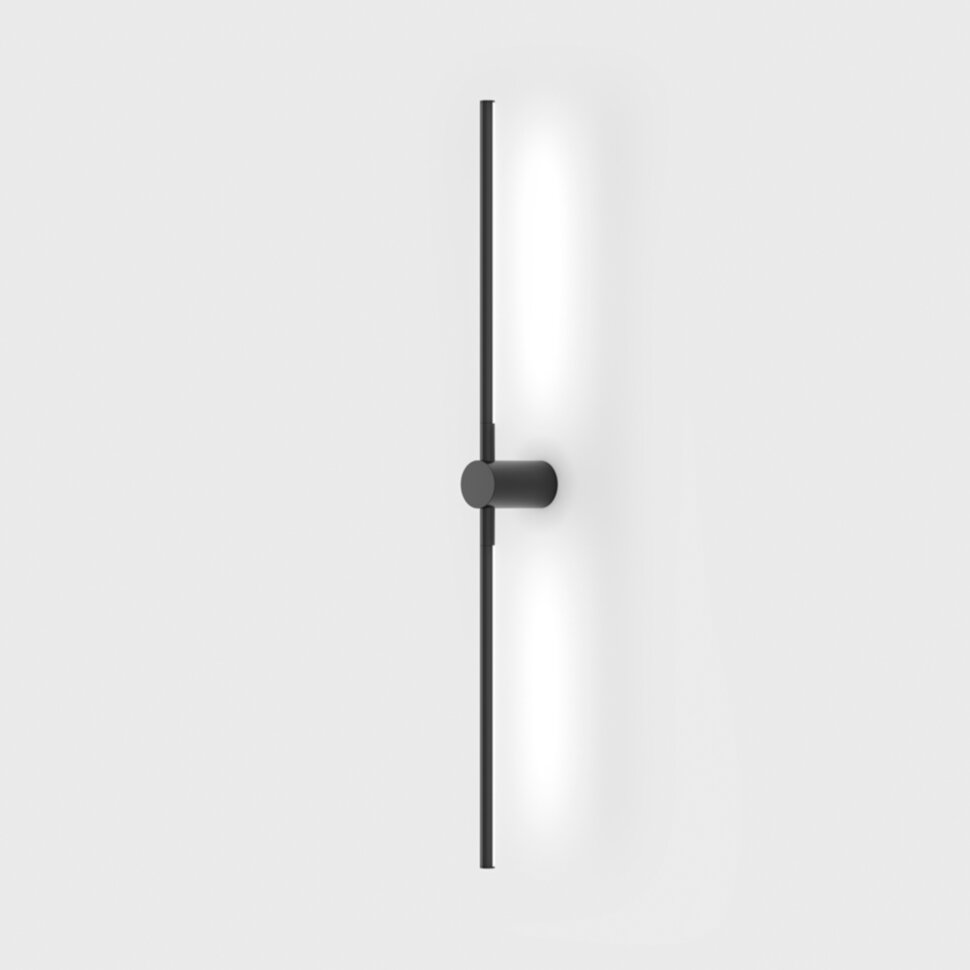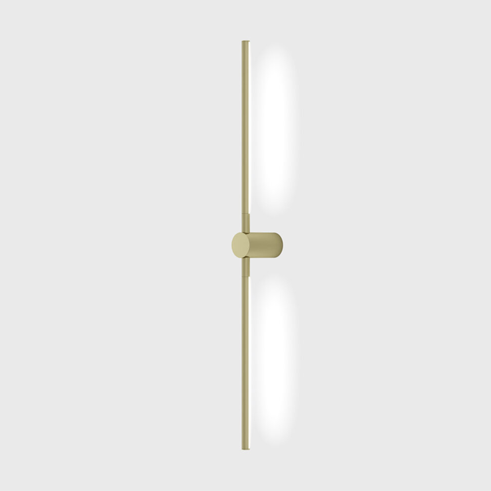 Nástěnné svítidlo, nast. směr svícení, základna kov, povrch černá/mosaz, difuzor plast opál, LED 6W, 413lm, teplá 3000K, vyzař. úhel 126°, Ra90, 48V, IP20, tř.1, rozměry d=15mm, l=766mm.