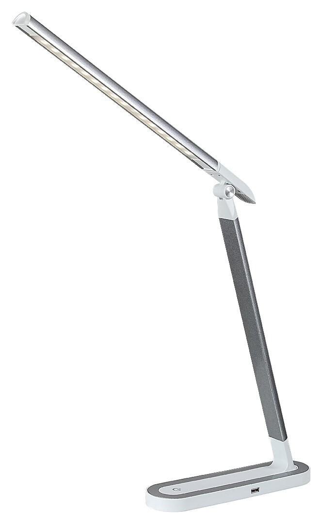 BIDENS 7W, USB - Stolní lampa, těleso kov, povrch stříbrná a bílá, difuzor plast opál, LED 7W, neutrální 4000K, 400lm, dotyk stmívač, Ra80, 230V, IP20, tř.2, rozměry 240x400x65mm, vč. USB nabíjení telefonu