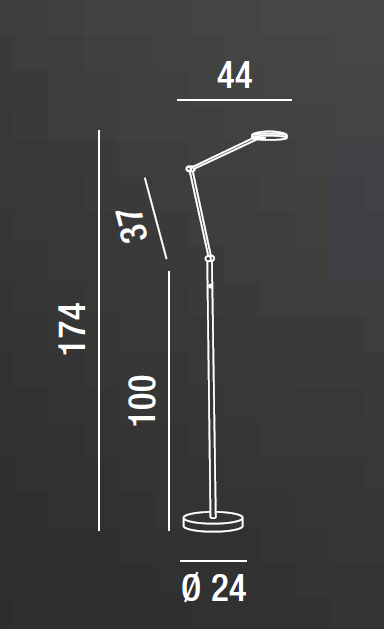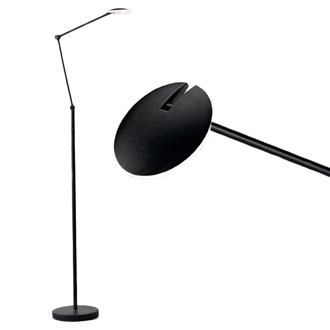 Stojací lampa, nastavitelný směr svícení, těleso kov, povrch bílá mat/černá, difuzor plast opál, LED 9,5W, 620lm, teplá 3000K, stmívatelné, 230V, IP20, rozměry 440mm, h=1740mm.