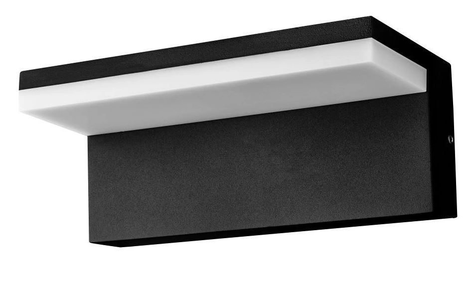 BLUES WL 12W CCT IP54 - Nástěnné venkovní svítidlo, základna hliník, povrch černá, difuzor plast opál, LED 9W, 720lm, přepín CCT teplá 3000K-neutrální 4000K, 230V, IP54, rozměry 200x85mm, svítí dolů.