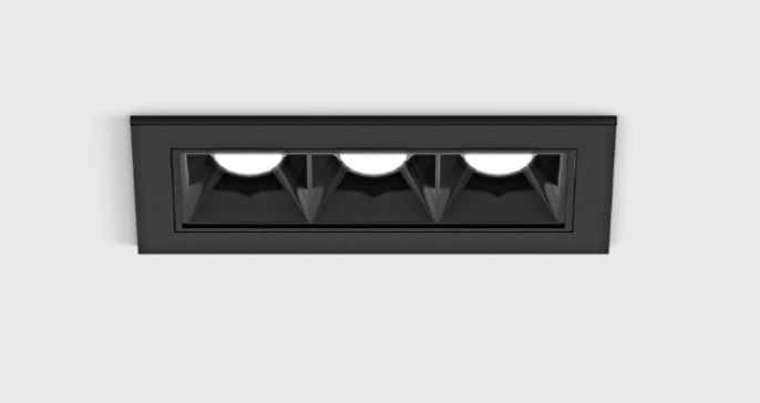 Stropní podhledové bodové buňkové svítidlo, těleso hliník, povrch černá, rámeček černá, LED 4,5W, 336lm, teplá 3000K/neutrální 4000K, vyzař. úhel 36°, Ra90, 230V, IP20, rozměry 83x45x38mm.