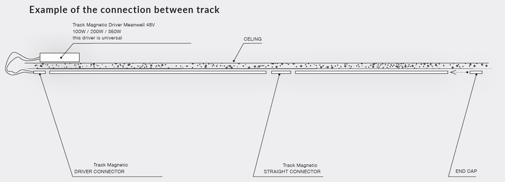 Napájecí zdroj pro magnetický systém, 100W/200W, 230V/48V, IP20, těleso kov a plast, povrch bílá/černá, rozměry 240x29x25mm.