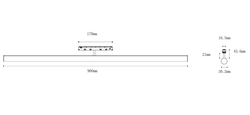Svítidlo do mag. systému, kov, černá, dif plast opál, smart Tuya dle typu, LED 18W, 1675lm, teplá 3000K, stmív. dle typu, vyz. úhel 150°, Ra90, 48V, IP20, rozměry 900x43x30mm.
