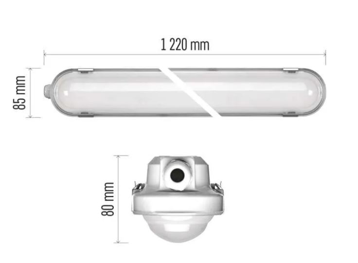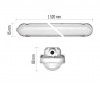Stropní, průmyslové, prachotěsné svítidlo, těleso plast, povrch šedá, difuzor plast opál, LED 35W/5600lm, 51W/8150lm, neutrální 4000K/ denní 6500K, Ra80, 230V, IP66, IK08, rozměry dle typu.