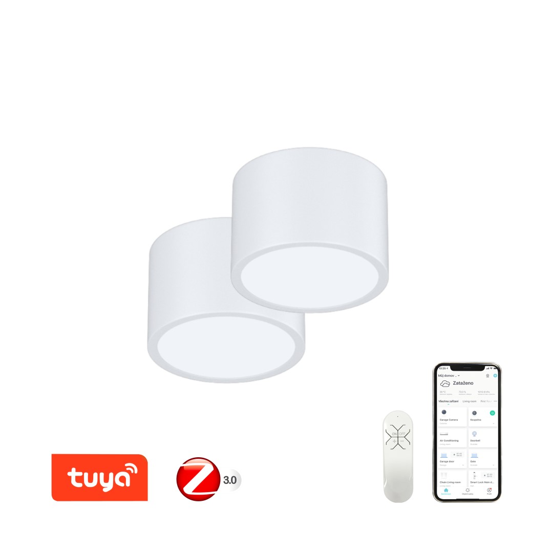 Stropní svítidlo, 2ks, kov, bílá/černá/zlatá/šedá, dif plast opál, LED 12W, 840lm, smart TUYA, Matter Zigbee 3.0., dálk ovl. (součástí) nebo mob. tel. CCT nast teplota teplá 2700K - denní 6500K, stmív,230V, IP20, d=150mm, h=100mm