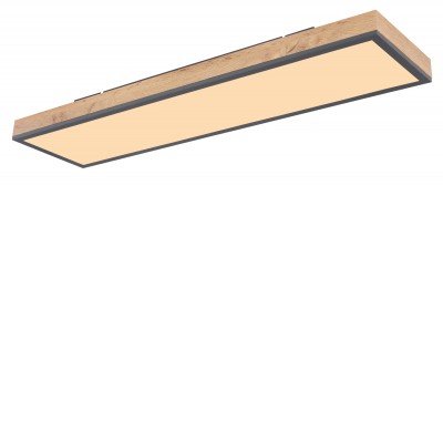 PATEST AO - Stropní svítidlo, základna kov, imitace dřevo světlé, rámeček černá, difuzor plast LED 24W, 2100lm/1500lm, teplá 3000K,Ra80, 230V, IP20, 800x200x65mm