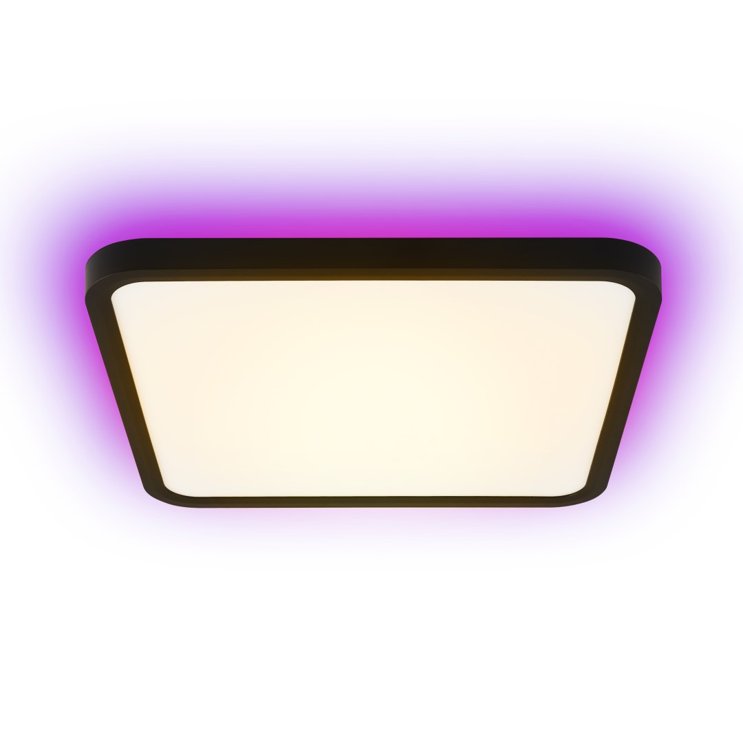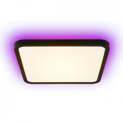 Stropní svítidlo, těleso kov, bílá/černá, dif plast opál, LED 50W, 3200lm, smart TUYA, WiFi, dálk ovl.Beacon (součástí) nebo mob. tel. CCT nast teplota teplá 2700K - denní 6500K, stmív, RGB, 230V, IP20, rozměry 400x400x35mm.