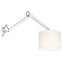 Nástěnná lampa, nastavitelný směr svícení, základna kov, povrch chrom lesk, stínítko textil bilá, pro žárovku 1x42W, E27, A60, 230V, IP20, tř.1. rozměry stínítko d=260mm h=180mm, 1 rameno 945mm