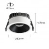 Podhledové bodové svítidlo, těleso hliník, povrch čená, bílá, LED 7W, 15W, teplá 3000K, neutrální 4000K, nastavitelný sklon svícení +/-30°, Ra80, dle typu stmívání TRIAC, 230V, IP20, d=82mm, h=47mm