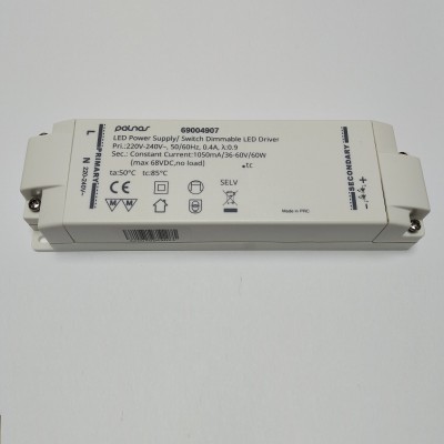 Driver STEP 60W - Napájecí zdroj LED, proudový, materiál plast, LED 60W, 1050mA, 36-60V, pro krokové STEP stmívání, IP20, tř.2, rozměry 166x50x29,5mm.