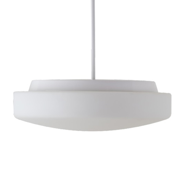 Závěsné svítidlo, základna kov, povrch bílá, difuzor sklo opál, LED 15W/20W, teplá 3000K/neutrální 4000K, 230V, IP41, tř.1, rozměry d=350mm, vč tyčového závěsu délka dle typu