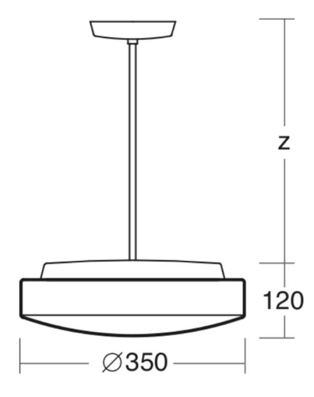 | Rozměry | d=350mm, vč tyčového závěsu délka dle typu. Uváděné rozměry jsou pouze informativní a výrobce je může změnit. |