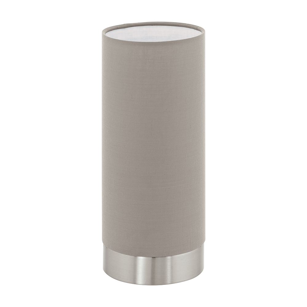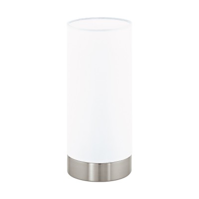 PASTERI - VÝPRODEJ Stolní lampa, základna kov, povrch nikl mat, stínítko textil bílá, pro žárovku 1x40W, E27, 230V, IP20, tř.2, rozměry d=120mm, h=255mm, dotykový vypínač a stmívač