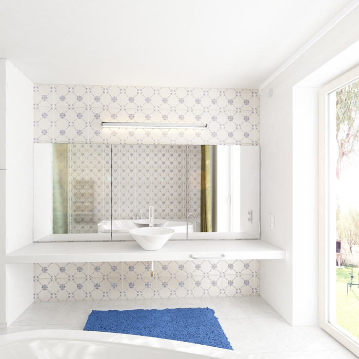 SKLADEM SYLVIA 2 K ZRCADLU IP44 DO KOUPELNY Stropní svítidlo, základna kov, difuzor sklo triplex opál, pro žárovku 28W/E14, nebo LED, 230V, do koupelny IP44 tř. zař.tř.1, 610x100x75mm