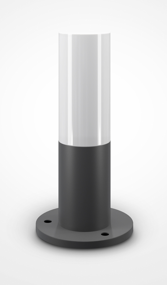 Sloupkové venkovní svítidlo, těleso kov, povrch šedá/černá, difuzor plast opál, pro žárovku 1x60W, E27, 230V, IP54, rozměry d=125mm, výška dle typu.