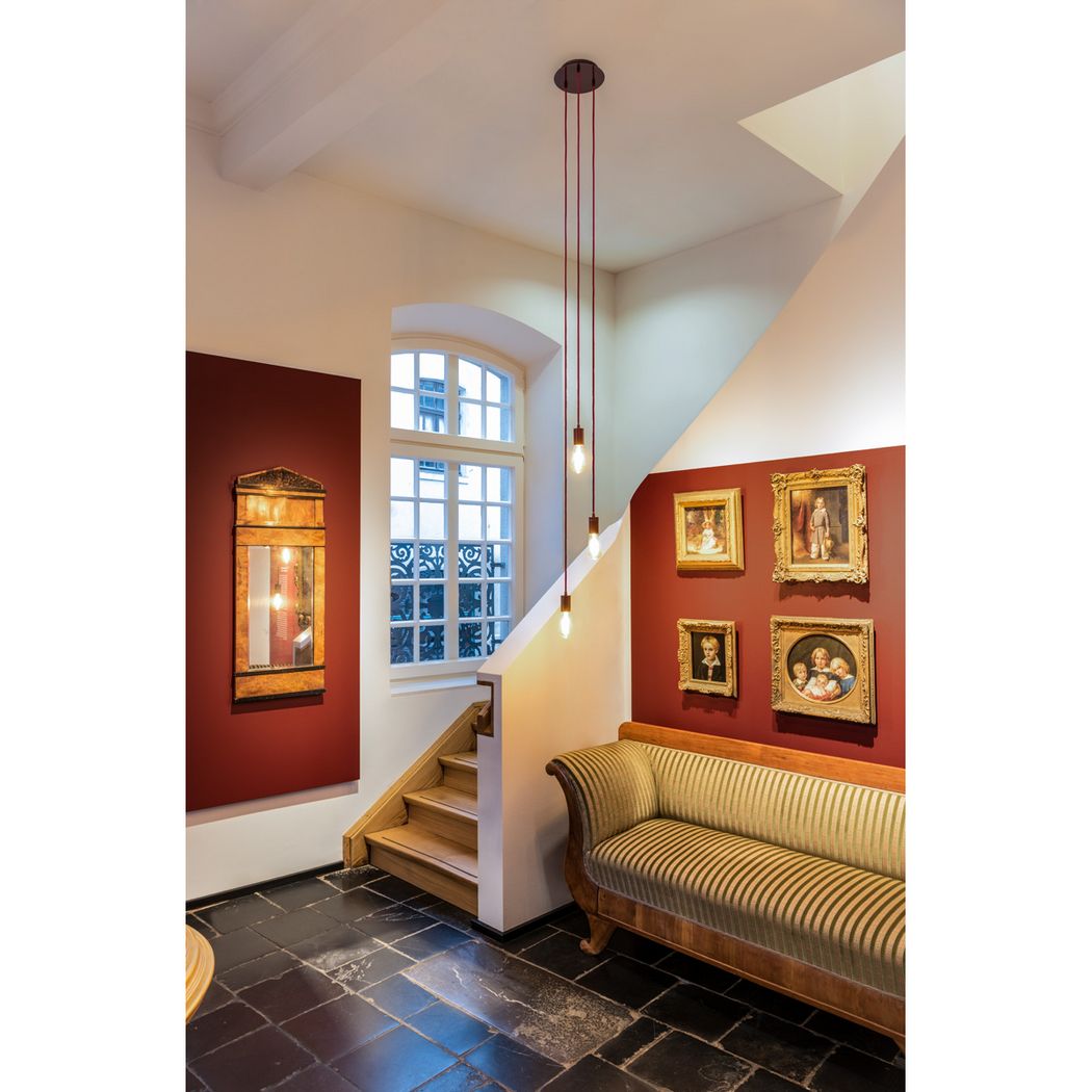 Závěsný kabel s objímkou, krytka hliník hliník, povrch černá, bílá, kartáčovaný hliník, zelená, červená, pro žárovku 1X60W, E27, 230V, tř.2, rozměry d=44mm h=91mm, vč. závěsného kabelu s textilním úpletem 5000mm