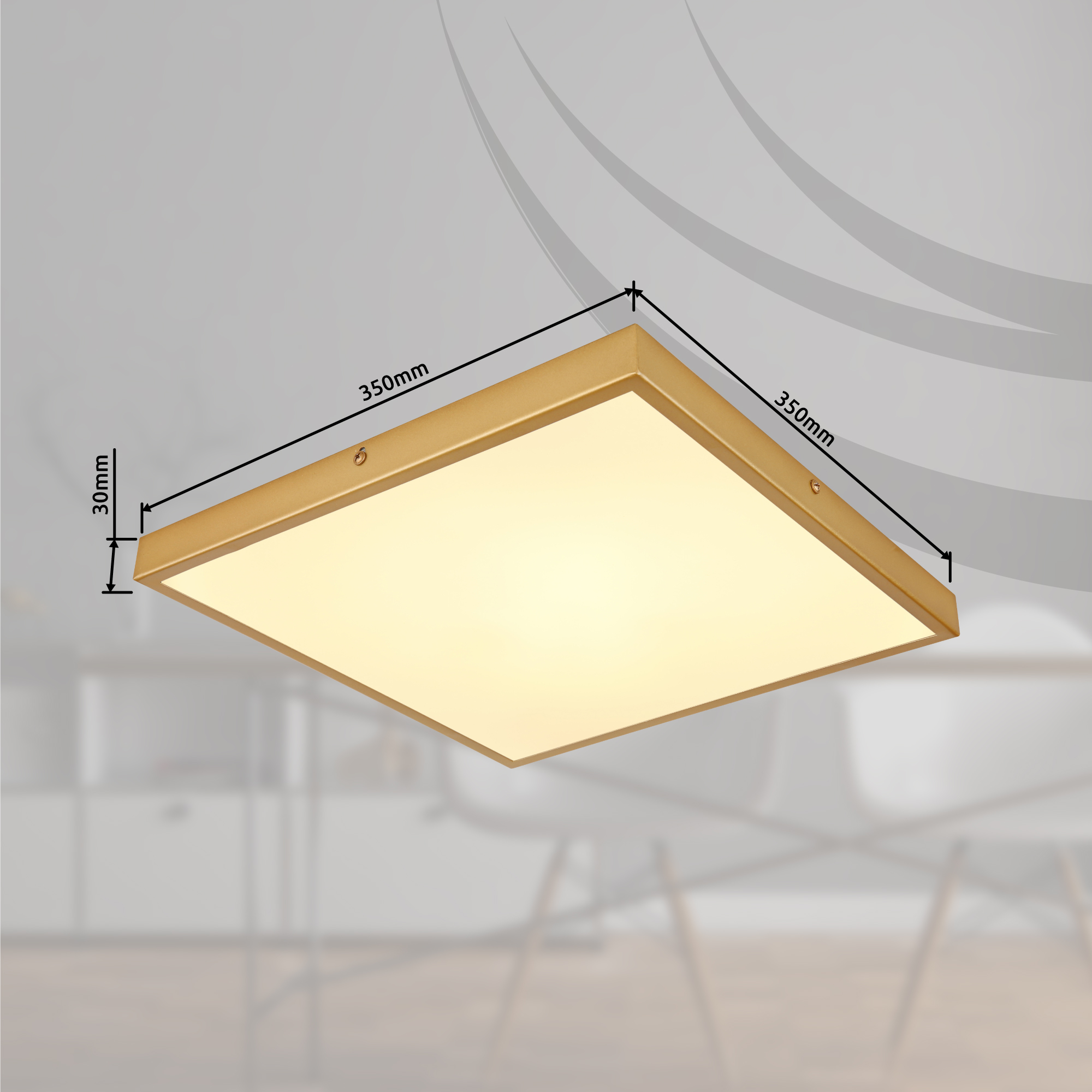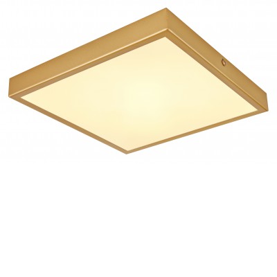 FLACIDA SQ 22W - Stropní přisazené svítidlo, těleso kov, povrch mosaz, difuzor plast opál, LED 22W, teplá 3000K, 2350lm, 230V, IP20, tř.1, rozměry 350x350x30mm.