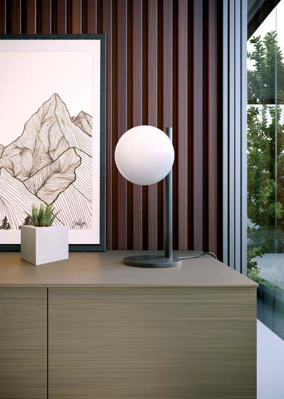 Stolní lampa, těleso kov, povrch broušený bronz/černá mat, difuzor sklo opál, pro žárovku 1x28W, E14, 230V, IP20, tř.2, rozměry d=150mm, h=350mm, vč. vypínače na kabelu.