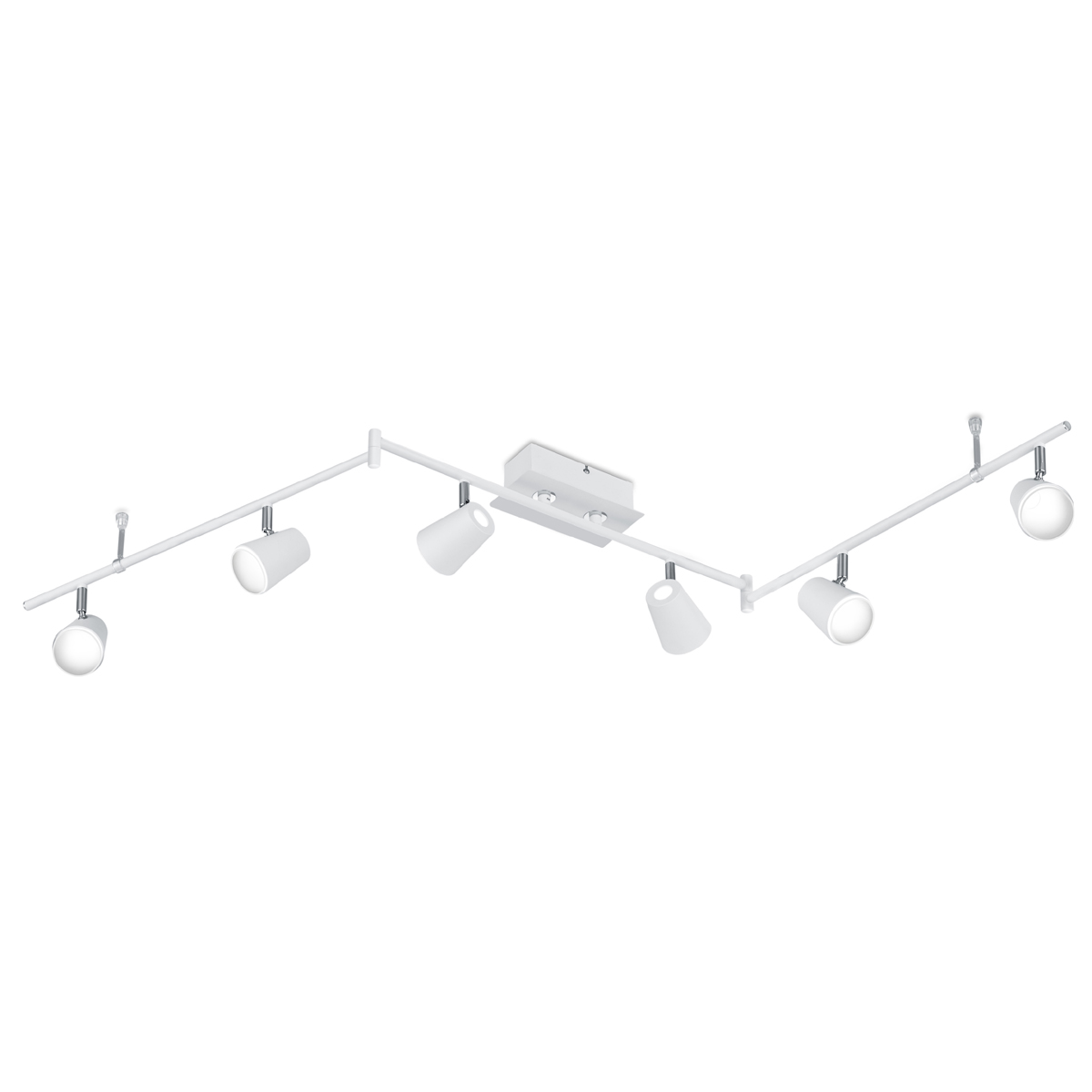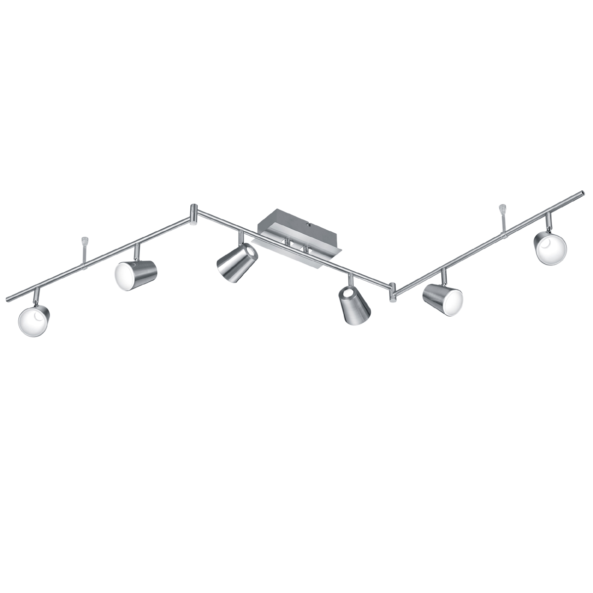 Stropní svítidlo, nastavitelný směr svícení, materiál kov, povrch nikl mat, bílá mat, difuzor plast opál, LED 6x6W, teplá 3000K, 6x550lm, 230V, IP20, tř.1, rozměry 1770x100x230mm.