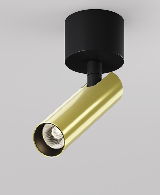 - Stropní, přisazené svítidlo, nastav. směr svícení, těleso kov, povrch mosaz, LED 6W, 290lm, teplá 3000K, vyzař. úhel 36°, 230V, IP20, rozměry d=30mm, l=125mm, h=166mm.