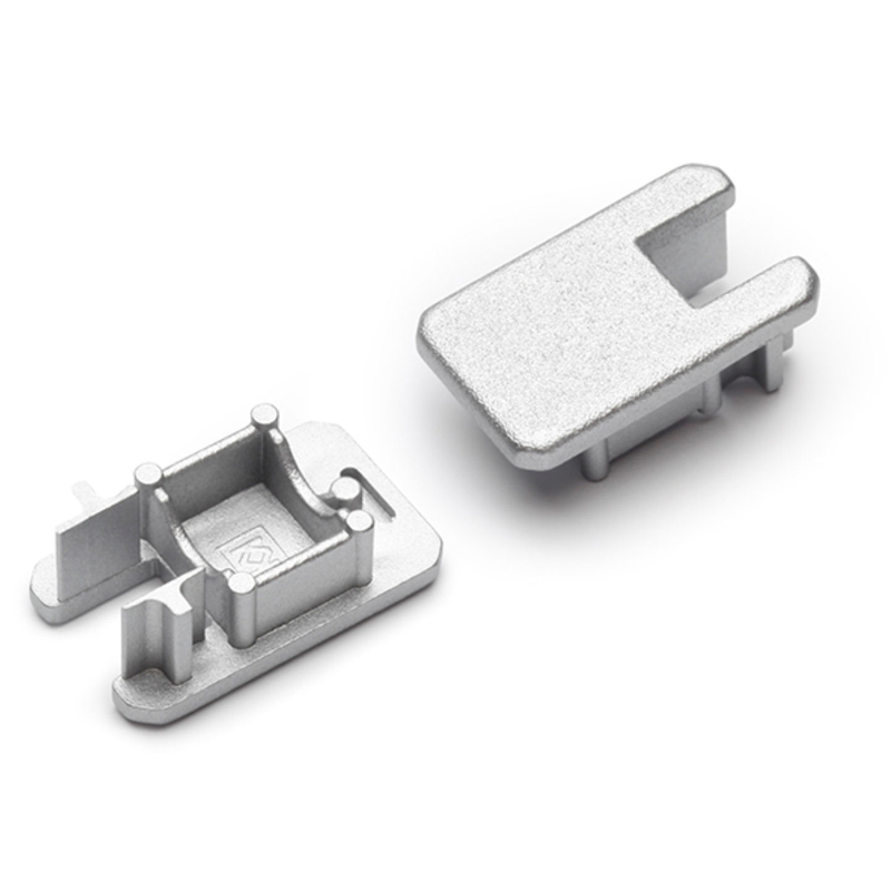 GENISTA koncovka S VÝŘEZEM - VÝPRODEJ Koncovka profilu pro LED pásky bez otvoru s výřezem pro sklo, materiál ABS+PC, povrch stříbrná, rozměry 16,4x27x10,5mm