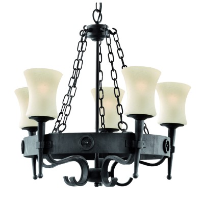 GORETRIAN2 PENDANT 5x10W E27 - Závěsné svítidlo, základna kov, těleso kov, povrch lak černá mat s ornamenty, dif sklo opál, pro žárovku 5x10W, E27, 230V, IP20, tř.1. rozm těleso d=630mm, h=580mm, vč závěsu l=1230mm, lze