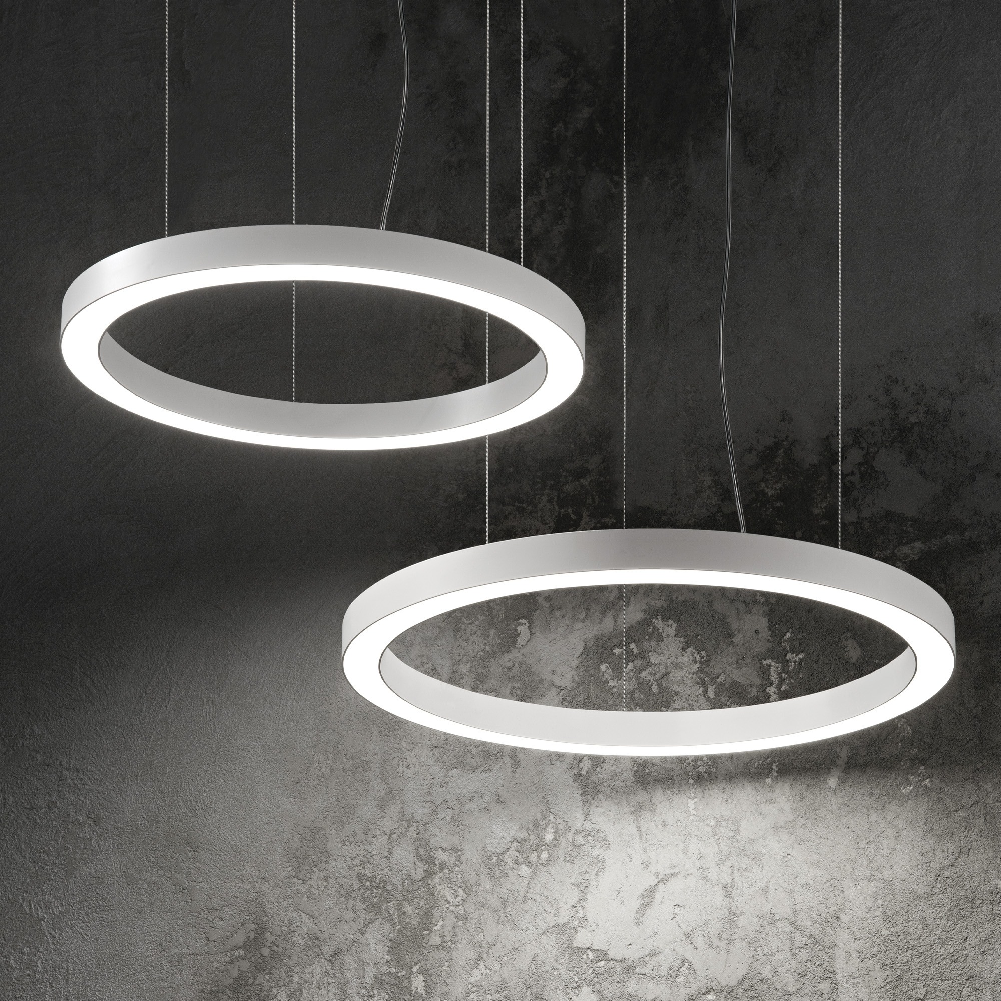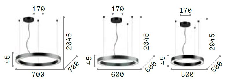 Závěsné svítidlo, těleso hliník, povrch bílá/černá, difuzor plast opál, LED 31W/2850lm, 38W/3300lm, 43W/3850lm, teplá 3000K, 230V, IP20, tř.2, rozměry dle typu.