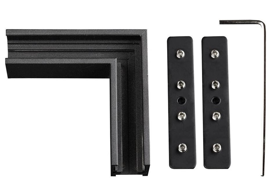 HOROS ECO CORNER MG 48V - Rohová L spojka 90°, horizontální odbočení, přisazeného magnetického systému, materiál hliník, povrch černá, 48V, rozměry 100x100mm.