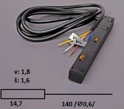 HOROS konektor DALI - Napájecí konektor pro magnetický systém, těleso kov, povrch černá, stmívání DALI, 48V, 4 vodiče, rozměry 147x18x16mm, l=140mm.