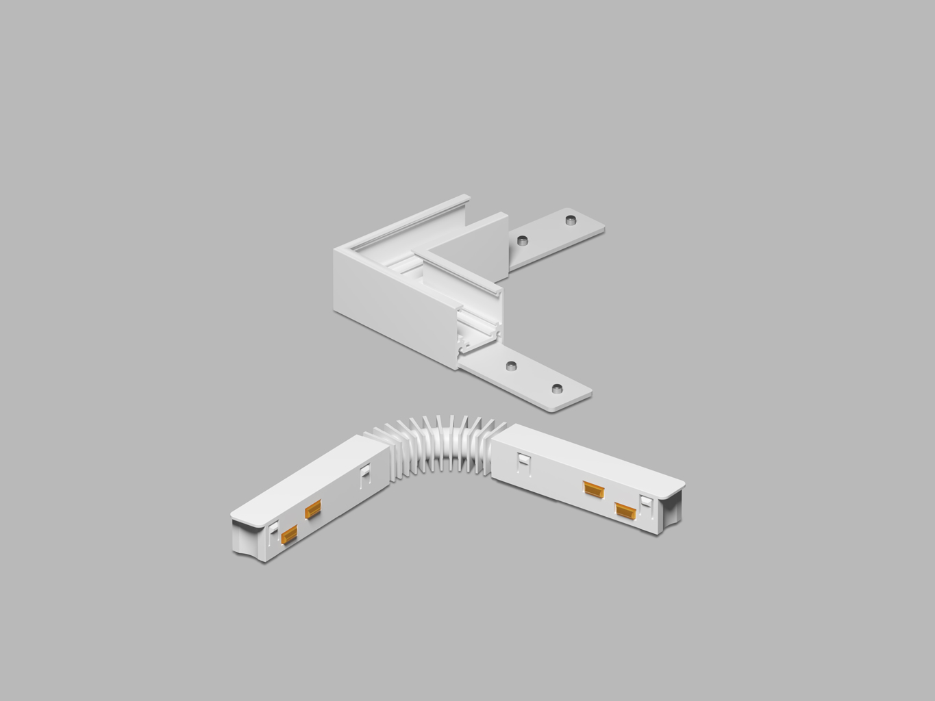 Rohová L spojka 90°, horizontální odbočení, stropního magnetického systému, materiál hliník, povrch černá/bílá, stmívání DALI, 48V, rozměry 68x27x68mm.