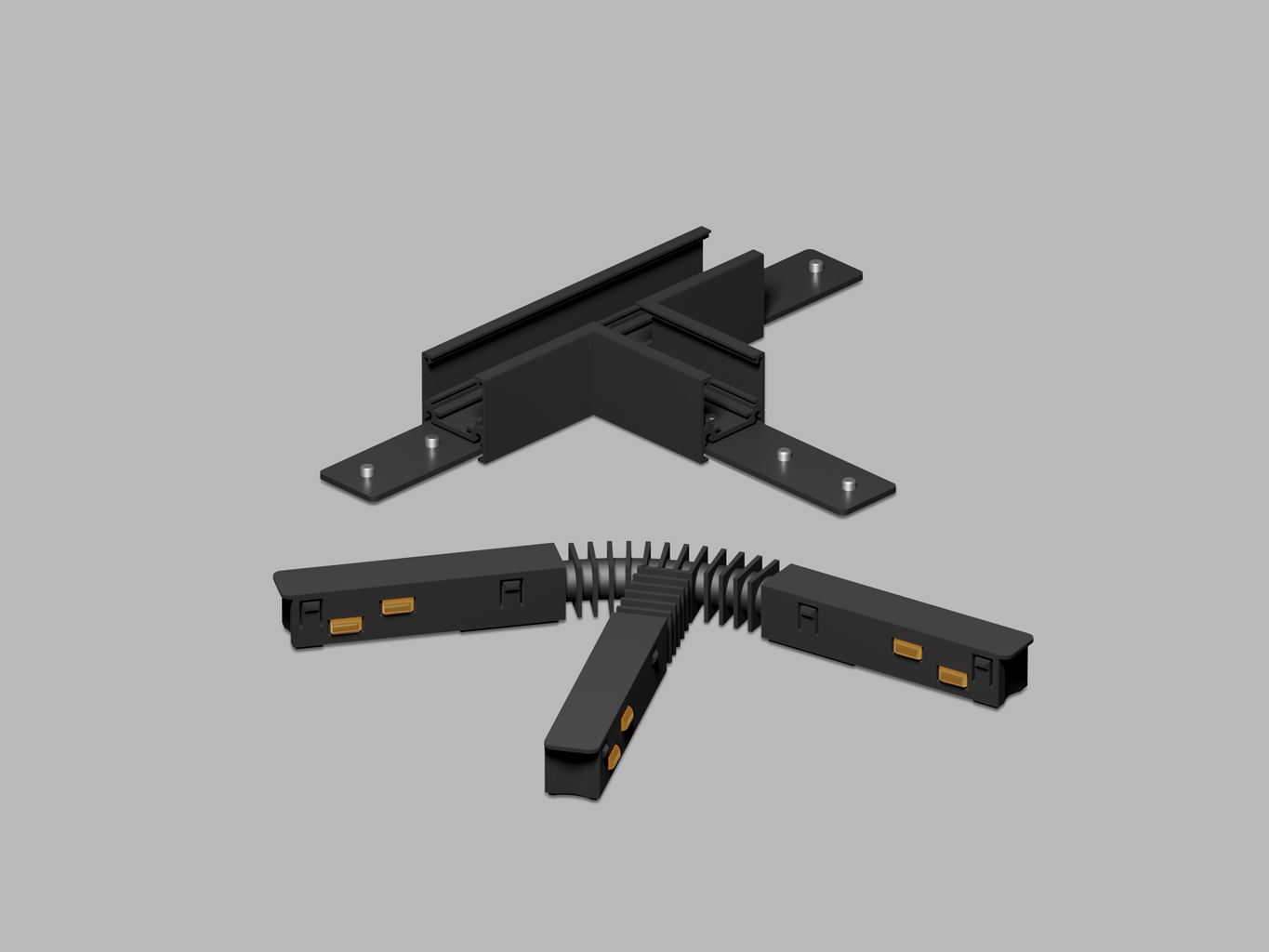 T-konektor, spoj pro magnetický systém, materiál hliník, povrch černá/bílá, stmívání DALI, 48V, rozměry 110x68x27mm.