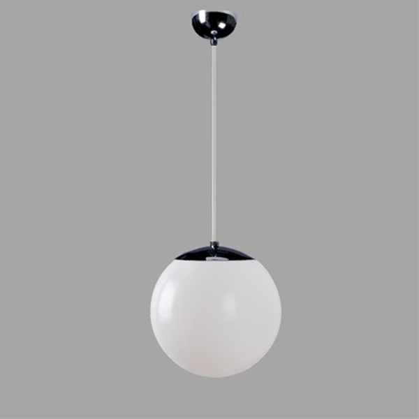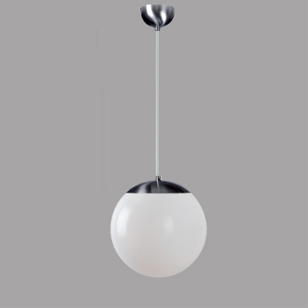 Závěsné svítidlo, základna kov, povrch nerez leštěný / nerez broušený / mosaz /bílá, difuzor plast, polyetylen, pro žárovku 1x75W, nebo LED, 230V, stmív 1-10V nebo DALI, IP40, stínítko d=400mm, pevný trubkový závěs