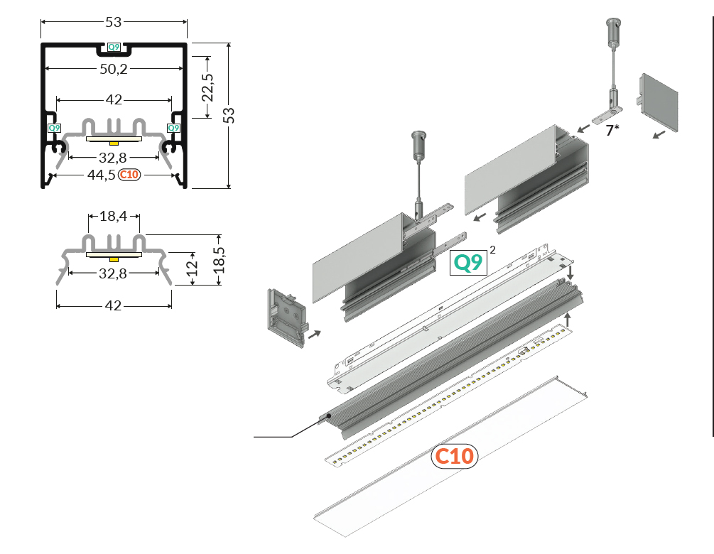 JANOS 42x18,5mm Přisazený, závěsný hliníkový profil pro LED pásky