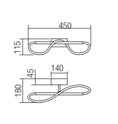 Nástěnné svítidlo, nast. směr svícení, těleso hliník/kov povrch zlatá nebo černá, difuzor plast opál, LED 12W, 1248lm, teplá 3000K, Ra82, stmív. 230V, IP20, rozměry 450x180x45mm
