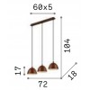 KRAUS HL3 3x60W E27 - Závěsné svítidlo, základna a difuzor kov, povrch měděná vně, vlnitý bílý smalt uvnitř, pro žárovku 3x60W, E27, 230V, IP20, tř.1, rozměry 720x170x180mm, včetně závěsu l=1040mm, lze z