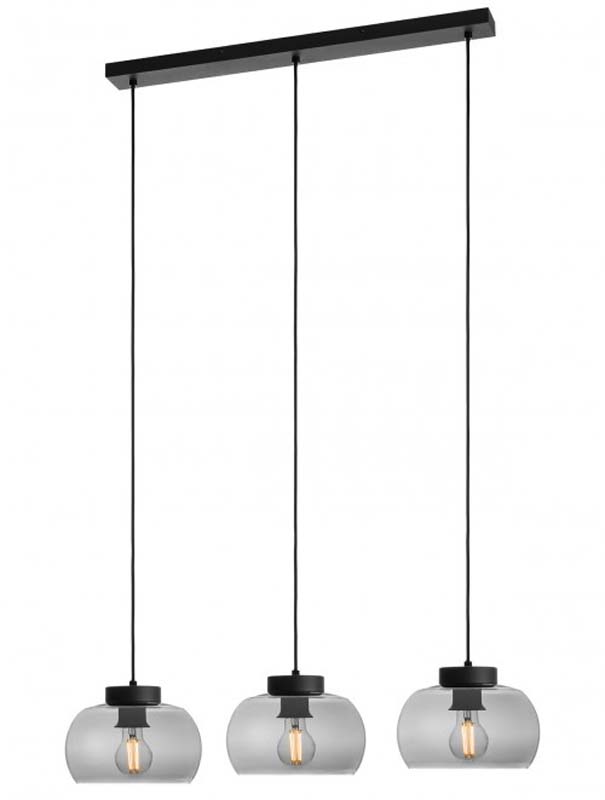 LAYES HL III 3x42W, E14 - Závěsné svítidlo, těleso kov, povrch černá mat, difuzor sklo kouřová, pro žárovku 3x42W, E14, 230V, IP20, tř.1, rozměry 820x210mm, vč závěs kabelu l=1200mm, lze zkrátit.