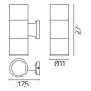 Nástěnné venkovní bodové svítidlo, těleso hliník, povrch černá nebo stříbrná, krycí sklo čiré, pro žárovku 2x60W, E27, 230V, IP54, rozměry h= 270, d=110mm, svítí nahoru/dolů